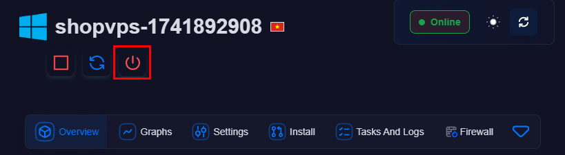 Bước 8: Sau đó quý khách nhấn nút Start/Stop the VPS như hình