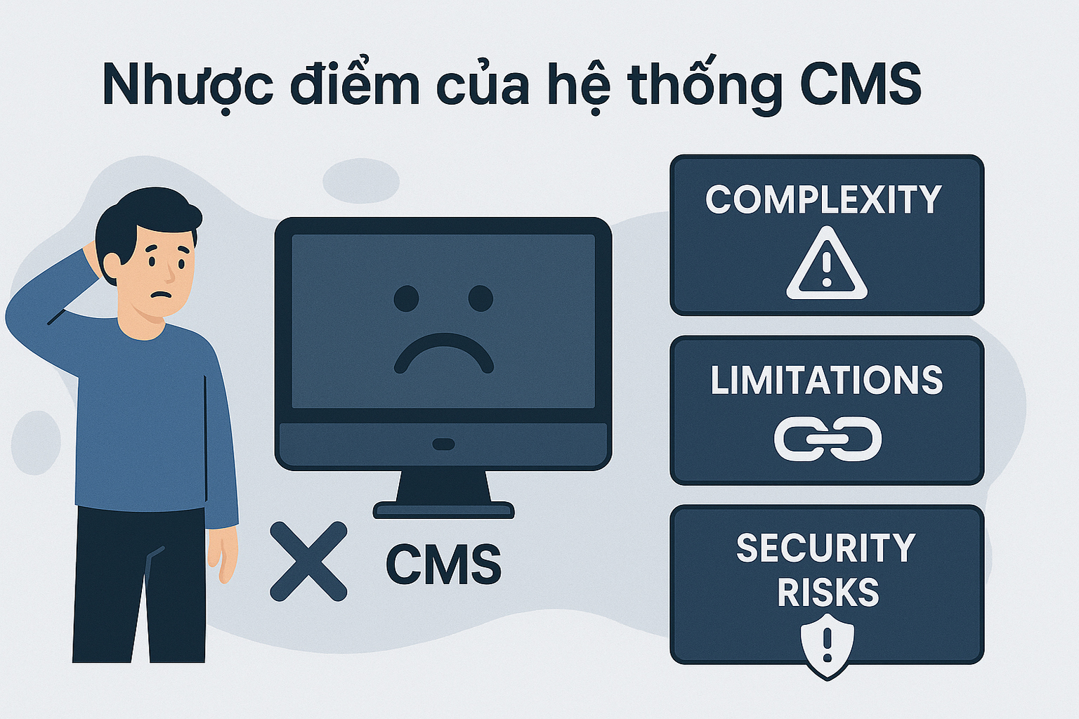 Bên cạnh những lợi ích vượt trội, CMS (Content Management System) vẫn tồn tại một số hạn chế mà người dùng cần cân nhắc trước khi triển khai: