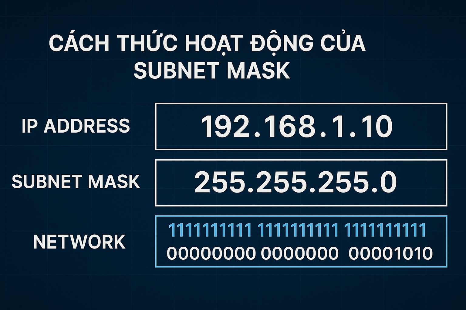 Vai trò của Subnet Mask là vạch ranh giới giữa hai phần này. Các bit “1” trong Subnet Mask biểu thị phần mạng, trong khi các bit “0” biểu thị phần host.