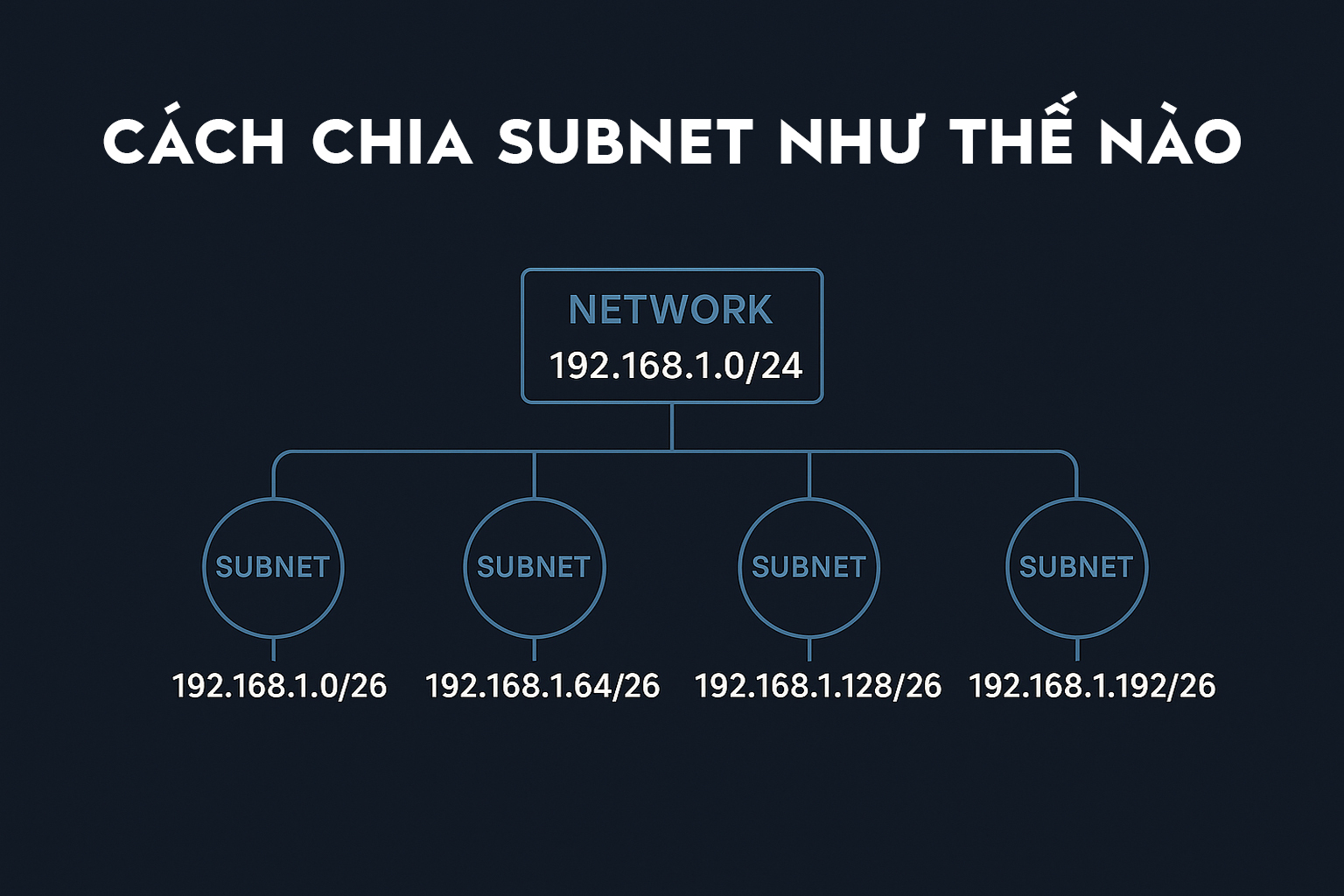Subnet Mask giúp xác định phần nào trong địa chỉ IP là mạng (Network) và phần nào là máy (Host). Để tính Subnet Mask khi cần chia một mạng thành nhiều subnet nhỏ hơn, bạn có thể làm theo các bước sau: