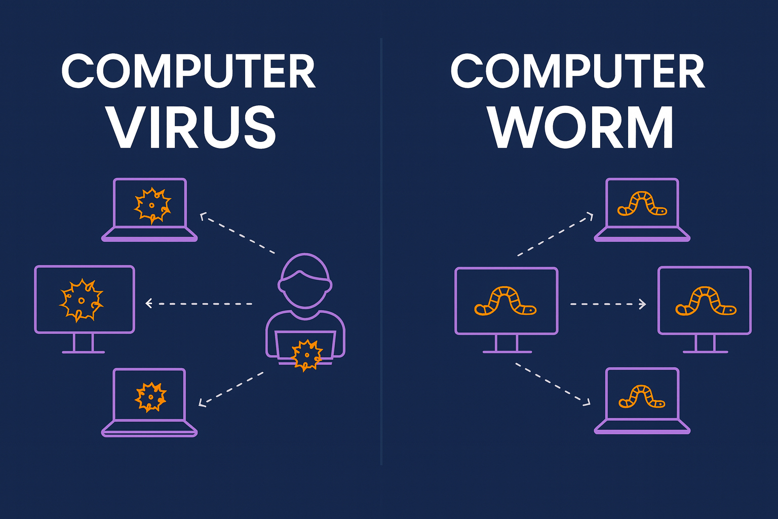 Khi nhắc đến mã độc (malware), nhiều người thường nhầm lẫn giữa worm (sâu máy tính) và virus máy tính. Thực tế, cả hai đều có khả năng tự sao chép và lây nhiễm, nhưng cơ chế phát tán và mức độ nguy hiểm lại hoàn toàn khác nhau.