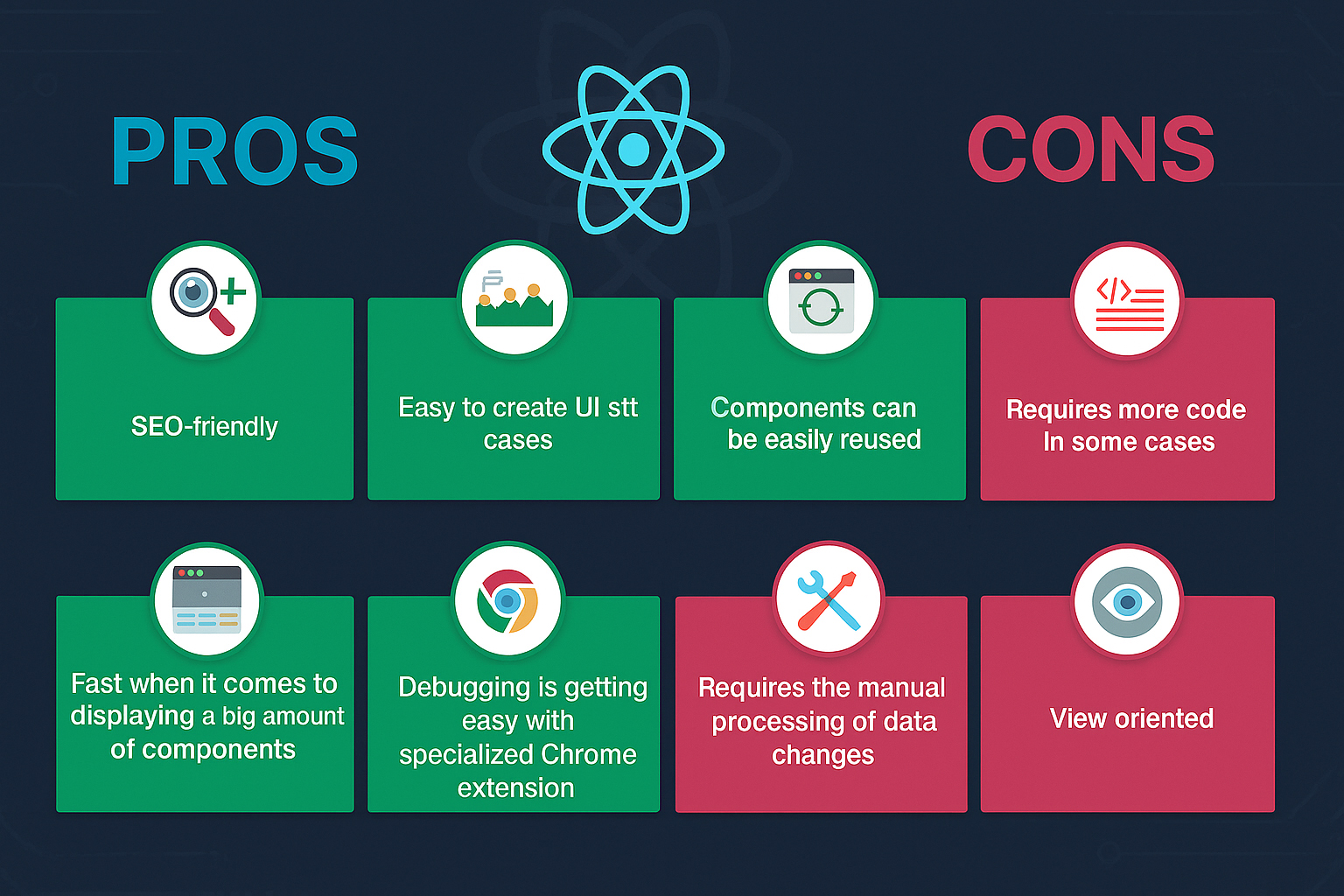Ban đầu, React được xem như một giải pháp mới mẻ trong việc xây dựng giao diện người dùng (UI) dựa trên component (thành phần giao diện) có thể tái sử dụng. Nhờ cơ chế Virtual DOM, React cho phép cập nhật dữ liệu nhanh hơn mà không cần tải lại toàn bộ trang — điều mà trước đây các framework JavaScript truyền thống như jQuery khó đạt được.