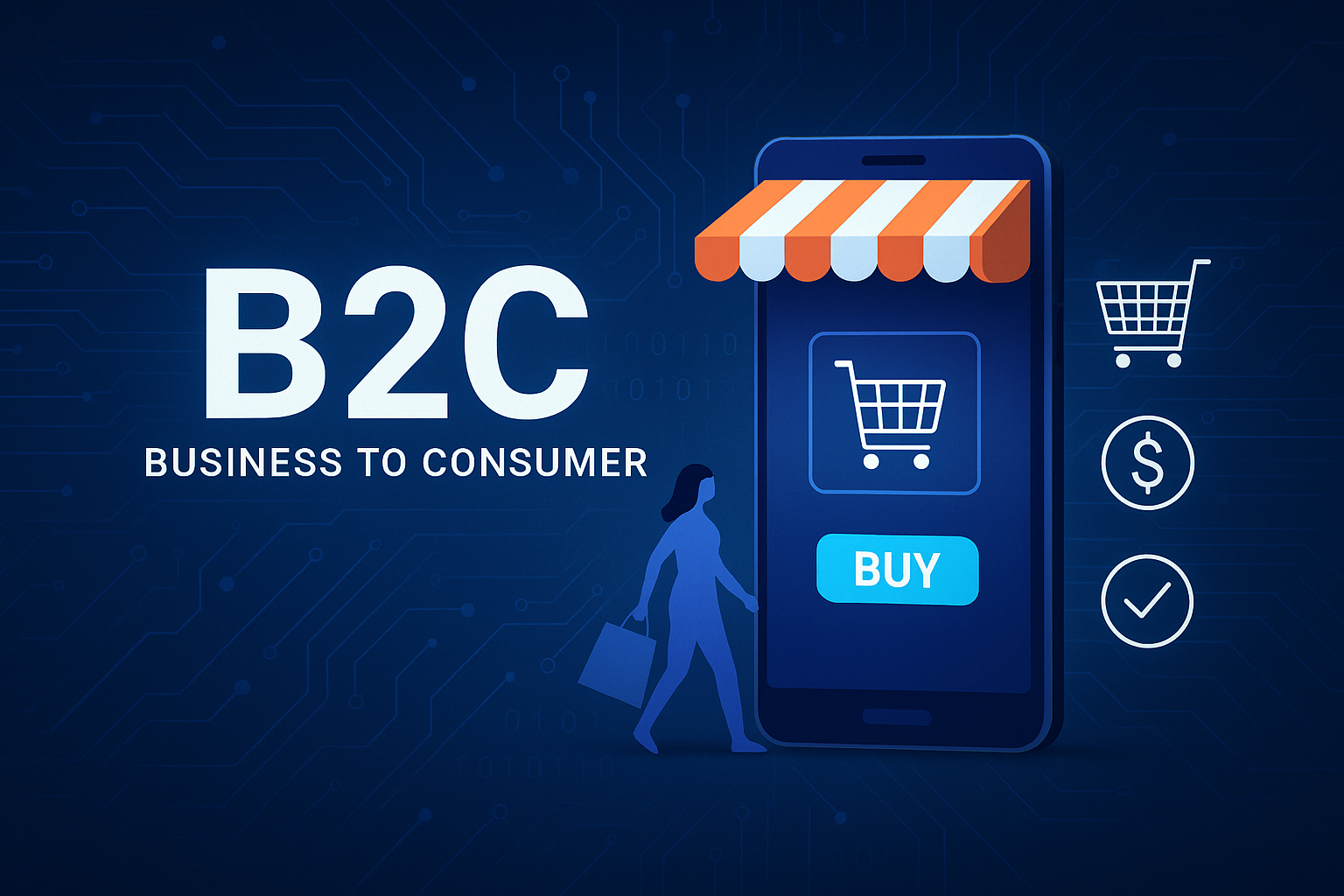 B2C là mô hình thương mại điện tử phổ biến nhất hiện nay, trong đó doanh nghiệp bán sản phẩm hoặc dịch vụ trực tiếp cho người tiêu dùng cuối cùng thông qua website hoặc ứng dụng trực tuyến.