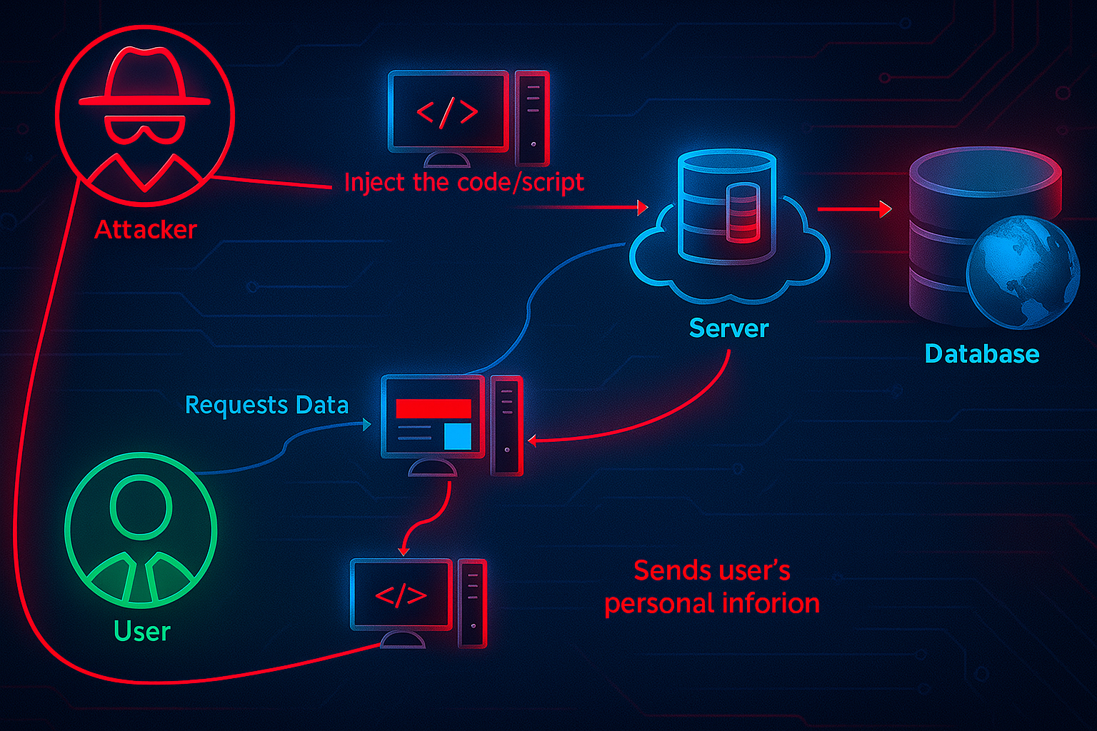 Kẻ tấn công lợi dụng hành vi này bằng cách dựng một trang web hoặc đường dẫn độc hại. Khi người dùng đã đăng nhập vào một website hợp lệ và vô tình truy cập trang độc hại, trình duyệt sẽ tự động gửi yêu cầu từ trang độc hại đến website mục tiêu, kèm theo cookie hợp lệ của nạn nhân. Lúc này, máy chủ tin rằng yêu cầu được gửi từ người dùng thật và tiến hành xử lý, gây ra các hậu quả như thay đổi mật khẩu, cập nhật thông tin, chuyển tiền, xoá dữ liệu,…