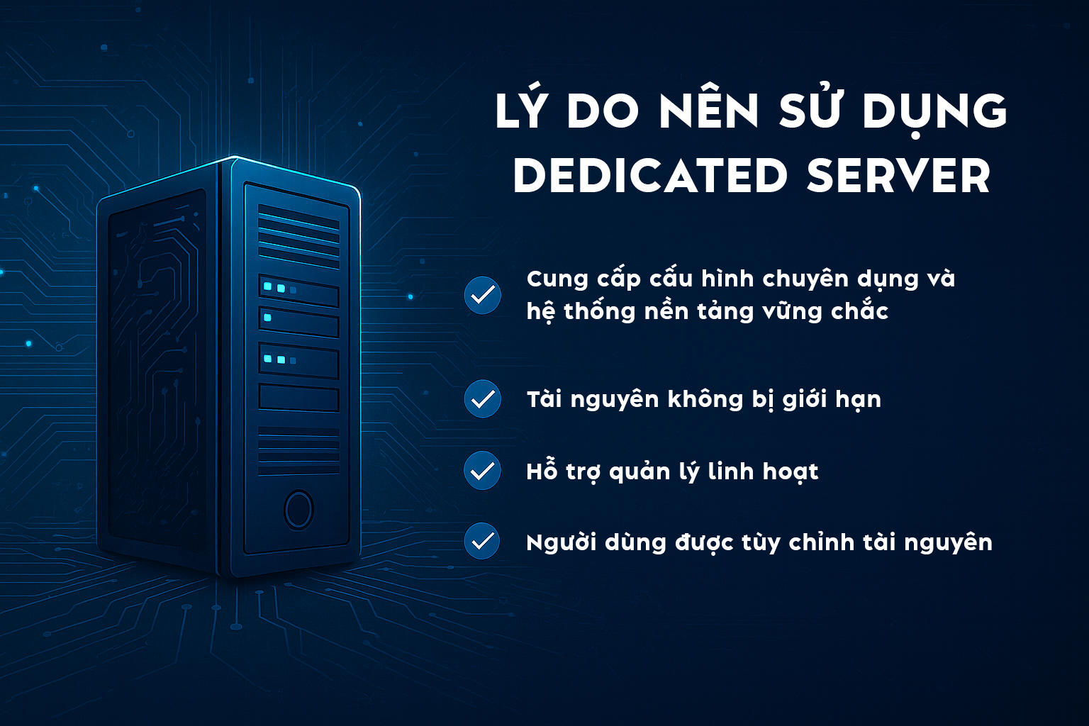 Với nhu cầu xử lý dữ liệu ngày càng lớn và yêu cầu bảo mật cao, nhiều doanh nghiệp lựa chọn Dedicated Server như một giải pháp tối ưu để vận hành hệ thống. Dedicated Server mang đến sự ổn định, mạnh mẽ và khả năng tùy chỉnh vượt trội mà các dịch vụ hosting thông thường khó đáp ứng. Dưới đây là những lý do nổi bật khiến bạn nên sử dụng Dedicated Server: