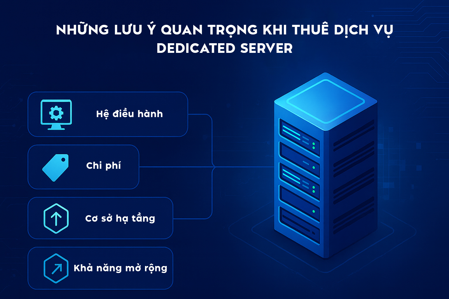 Khi lựa chọn thuê Dedicated Server, doanh nghiệp cần cân nhắc nhiều yếu tố để đảm bảo máy chủ hoạt động ổn định, phù hợp nhu cầu và tối ưu chi phí. Dưới đây là những lưu ý quan trọng bạn không nên bỏ qua: