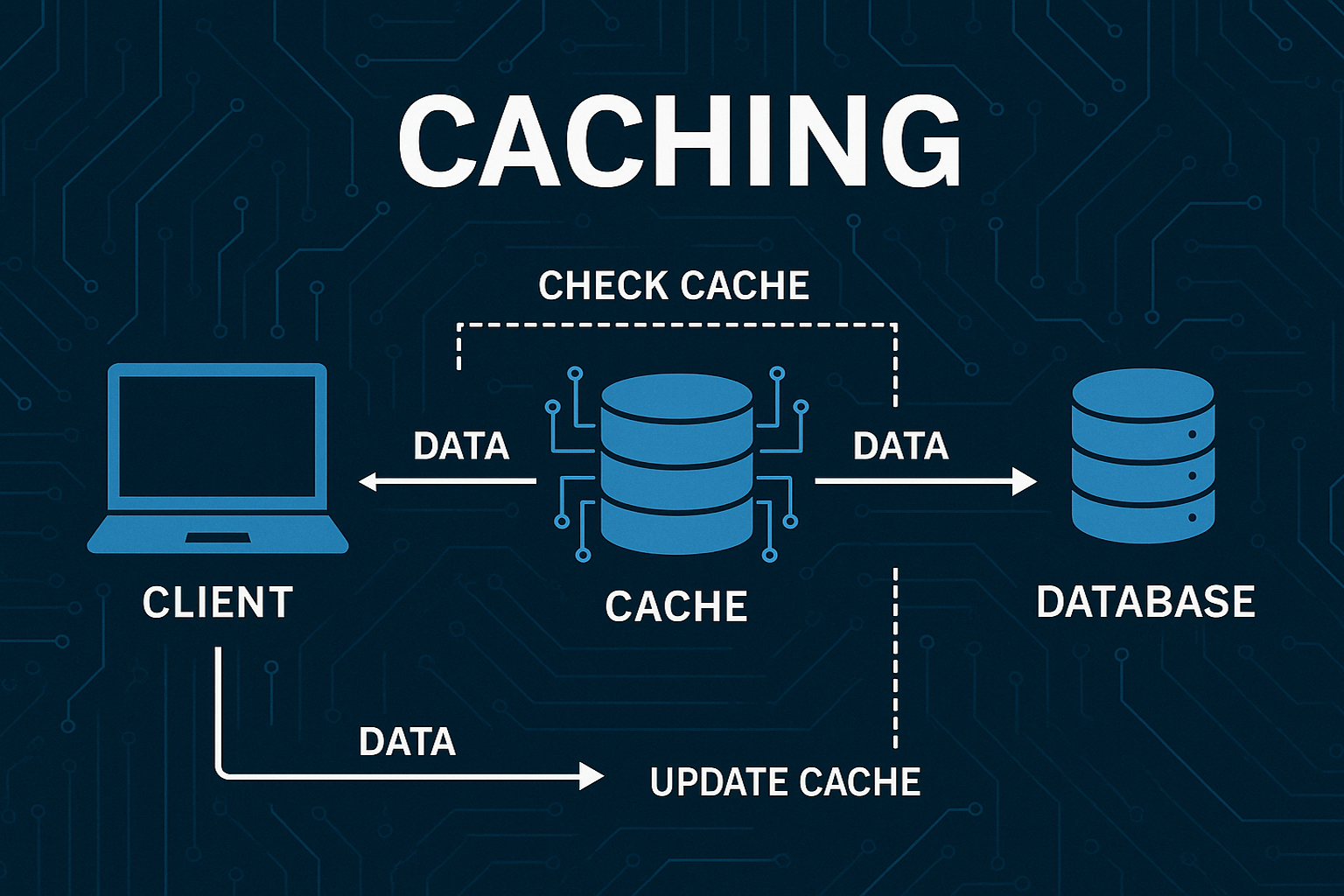 Caching là kỹ thuật lưu trữ tạm thời những dữ liệu đã được sử dụng hoặc xử lý trước đó vào một vùng nhớ có tốc độ truy xuất rất nhanh. Mục tiêu của cơ chế này là rút ngắn thời gian phản hồi và giảm số lần hệ thống phải truy cập trực tiếp vào nguồn dữ liệu gốc — vốn tốn nhiều tài nguyên hơn.