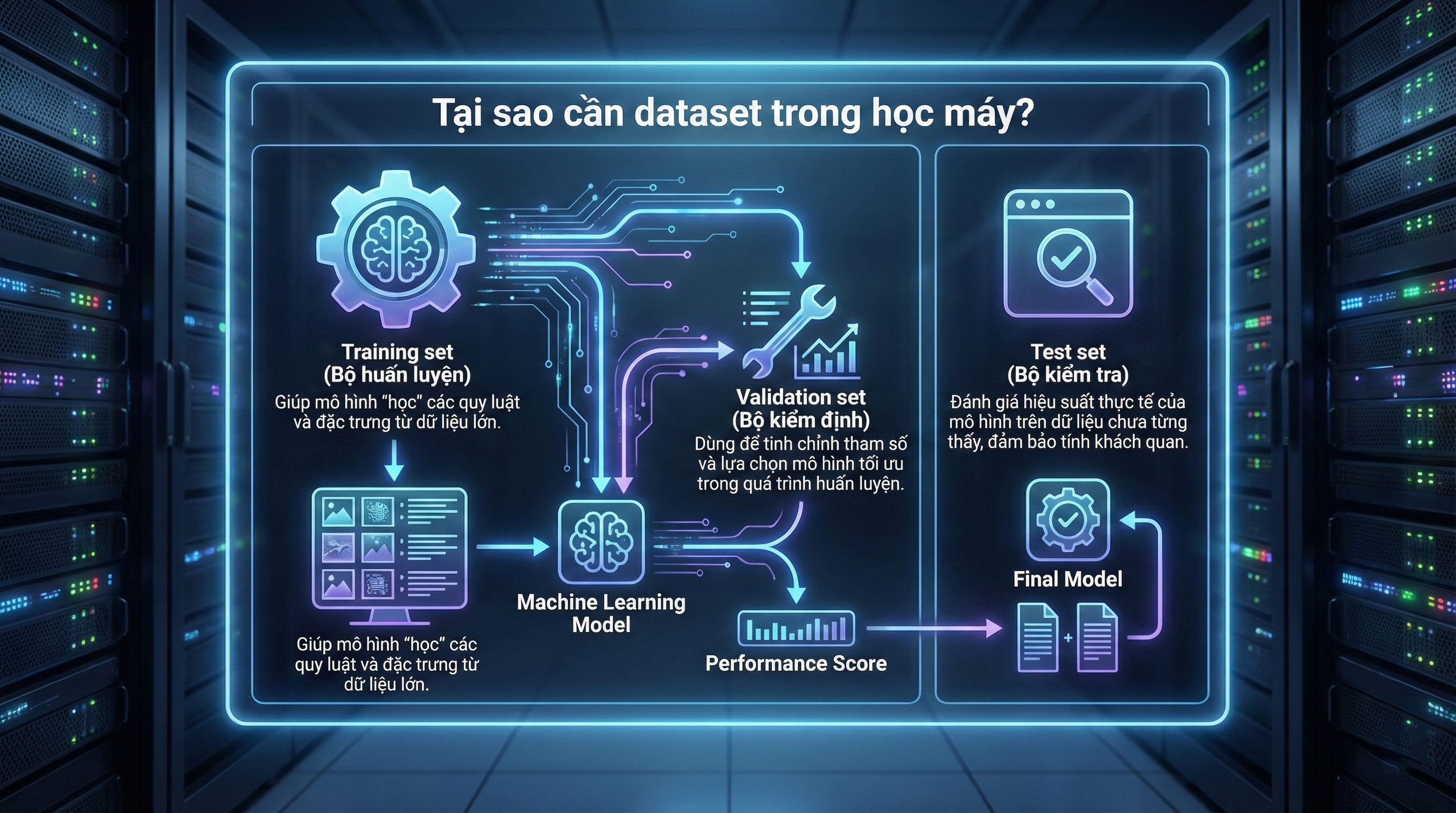 Validation set là thành phần quan trọng giúp mô hình tìm được “điểm cân bằng” giữa khả năng học tốt và khả năng tổng quát hóa.