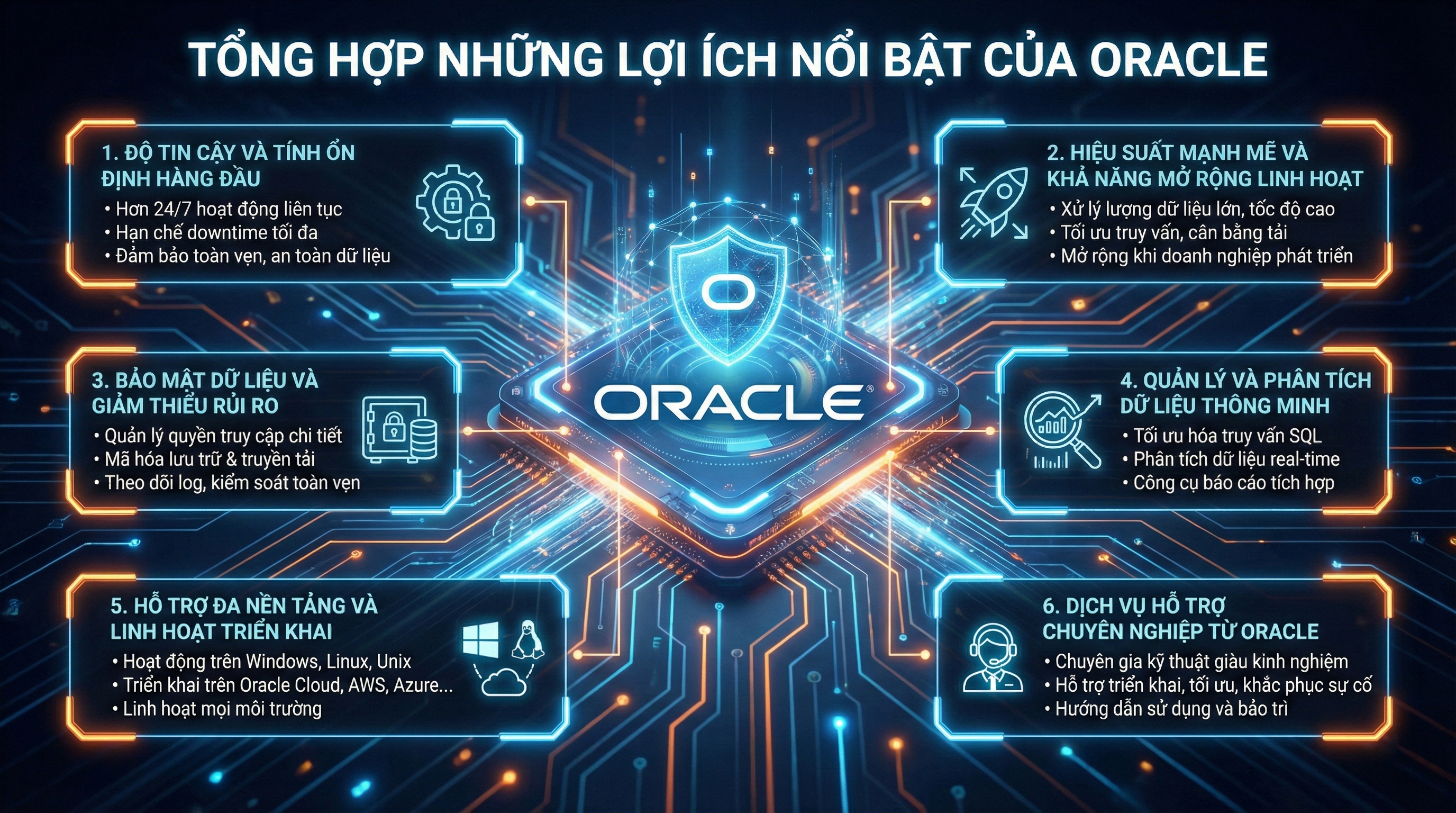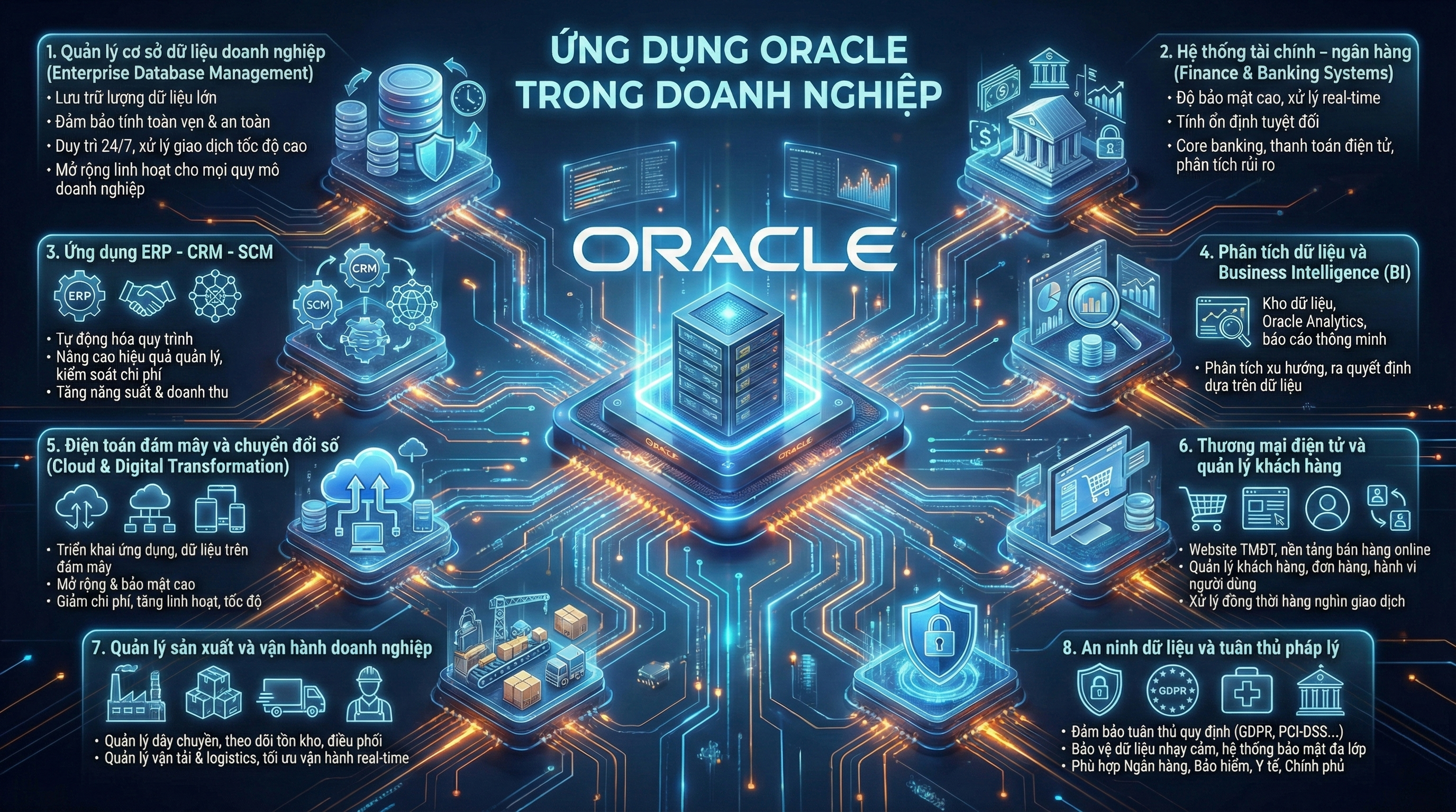 Trong bối cảnh chuyển đổi số ngày càng mạnh mẽ, Oracle đóng vai trò quan trọng giúp doanh nghiệp tối ưu vận hành, nâng cao năng lực phân tích và bảo vệ dữ liệu trước các rủi ro an ninh mạng.
