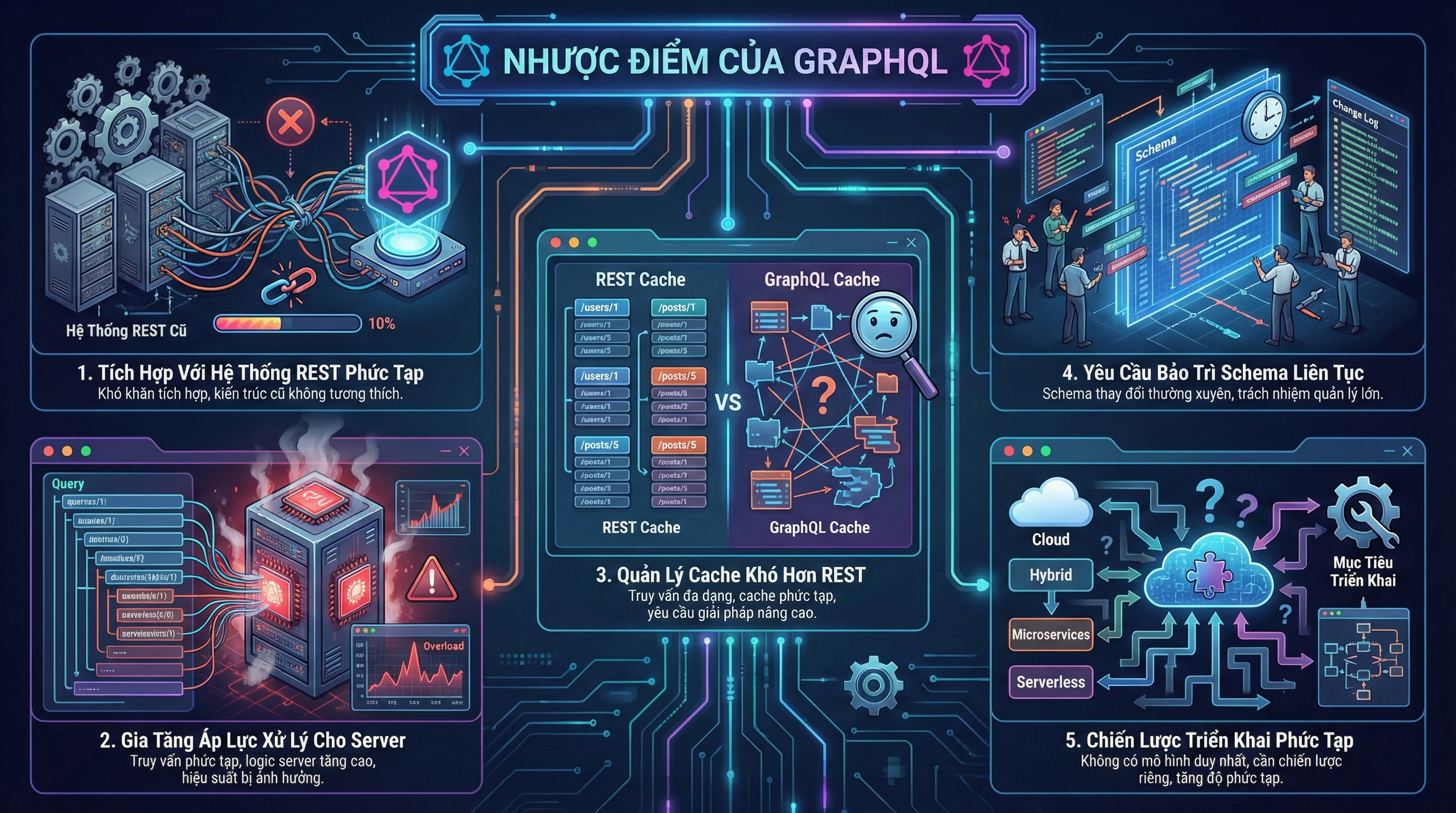 Bên cạnh những lợi ích, GraphQL cũng tồn tại một số hạn chế cần cân nhắc: