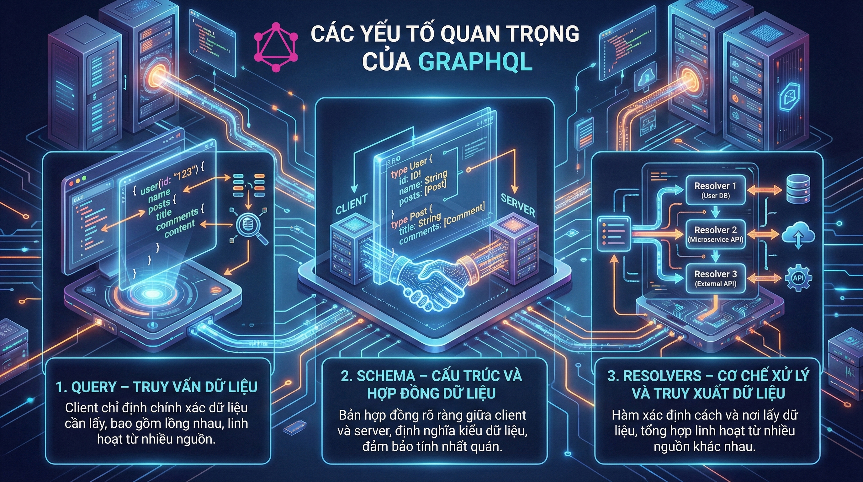 GraphQL được xây dựng dựa trên một số thành phần cốt lõi, giúp nó trở thành một hệ thống truy vấn dữ liệu linh hoạt, mạnh mẽ và dễ mở rộng. Việc hiểu rõ các yếu tố này sẽ giúp bạn nắm vững cách GraphQL hoạt động và triển khai hiệu quả trong thực tế.