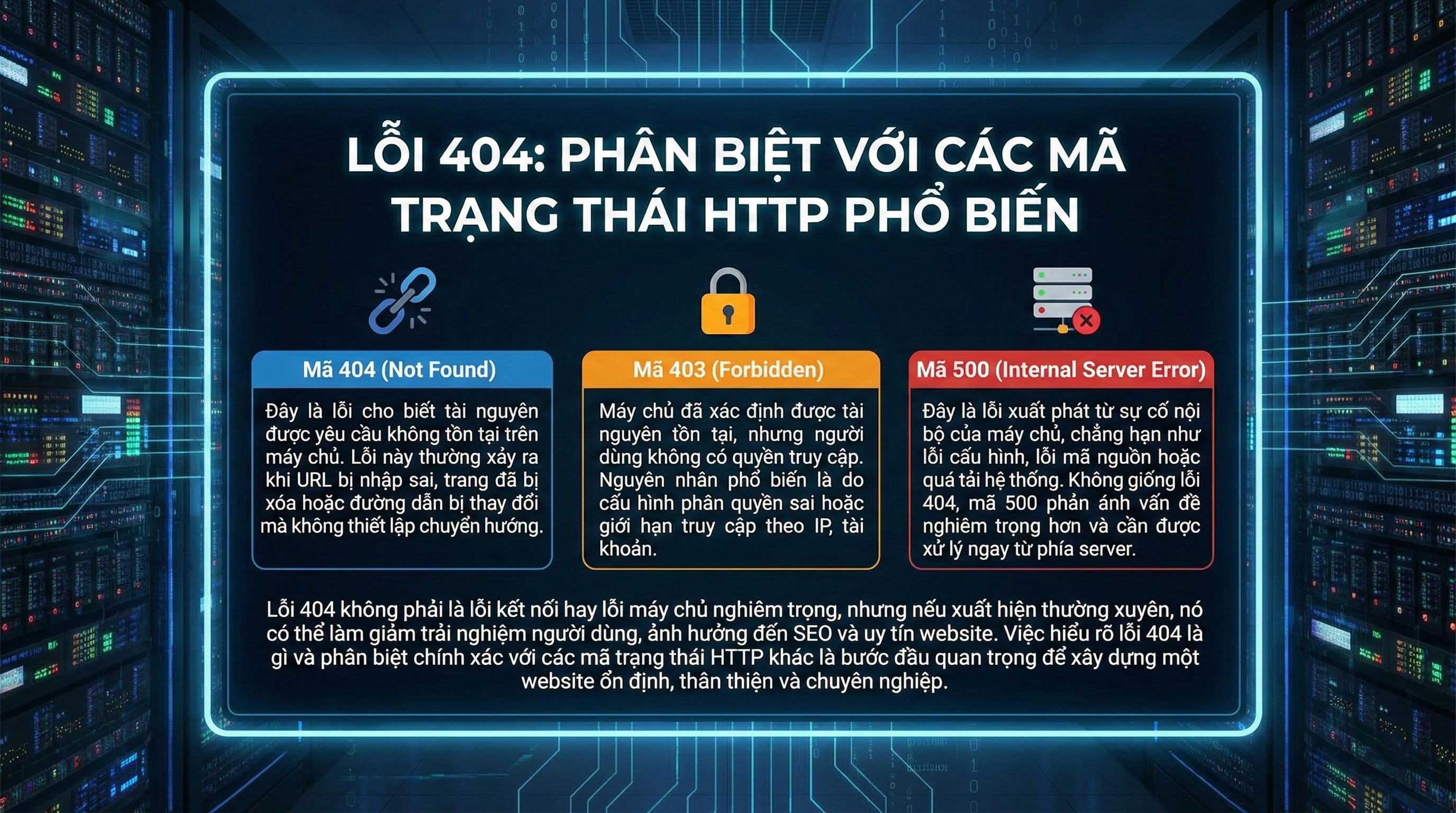 Để hiểu rõ hơn bản chất của lỗi 404, bạn cần phân biệt nó với một số mã trạng thái HTTP thường gặp khác: