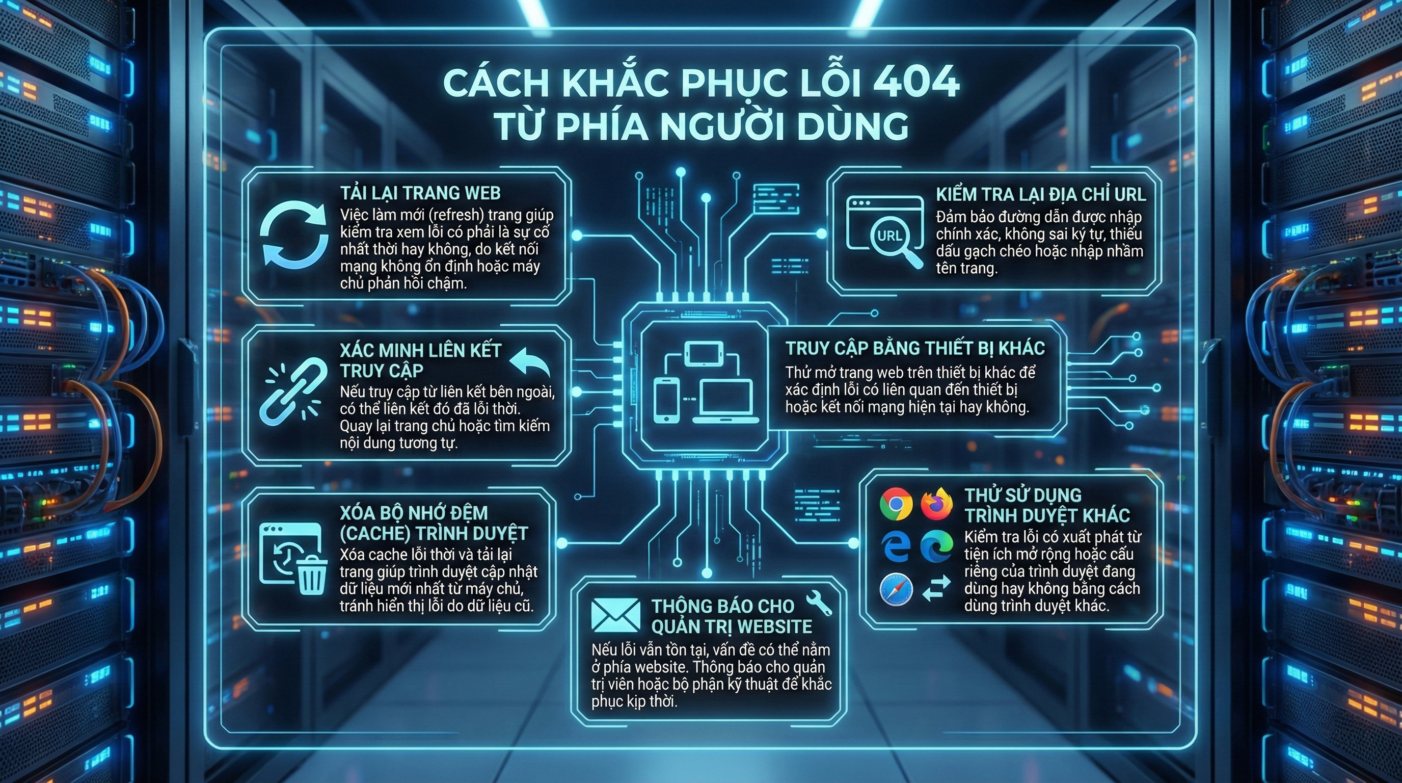 Khi truy cập website và gặp thông báo lỗi 404, không phải lúc nào nguyên nhân cũng đến từ máy chủ. Trong nhiều trường hợp, người dùng hoàn toàn có thể tự kiểm tra và xử lý nhanh chóng bằng những cách đơn giản dưới đây.