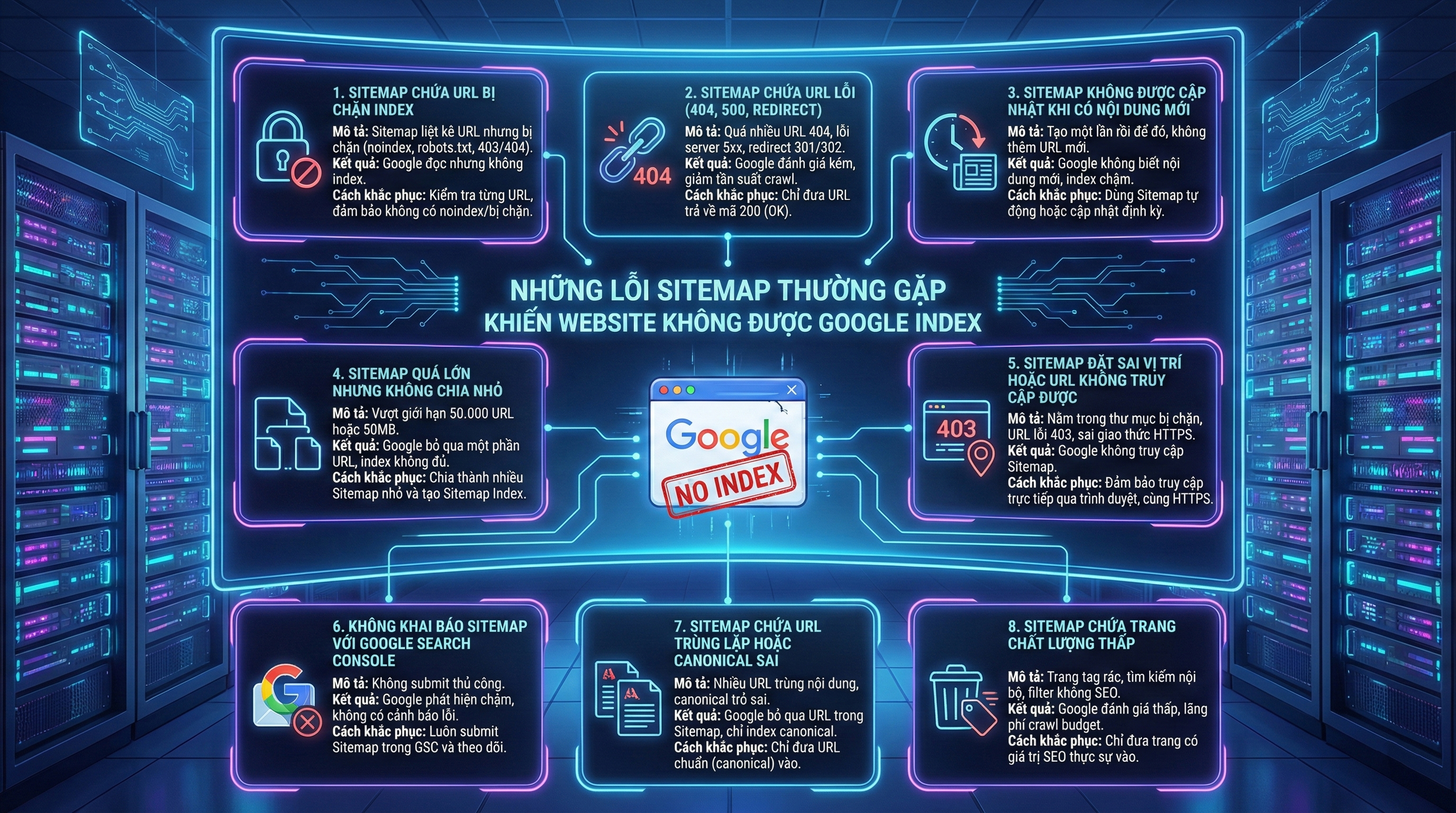 Những lỗi Sitemap thường gặp khiến website không được Google index