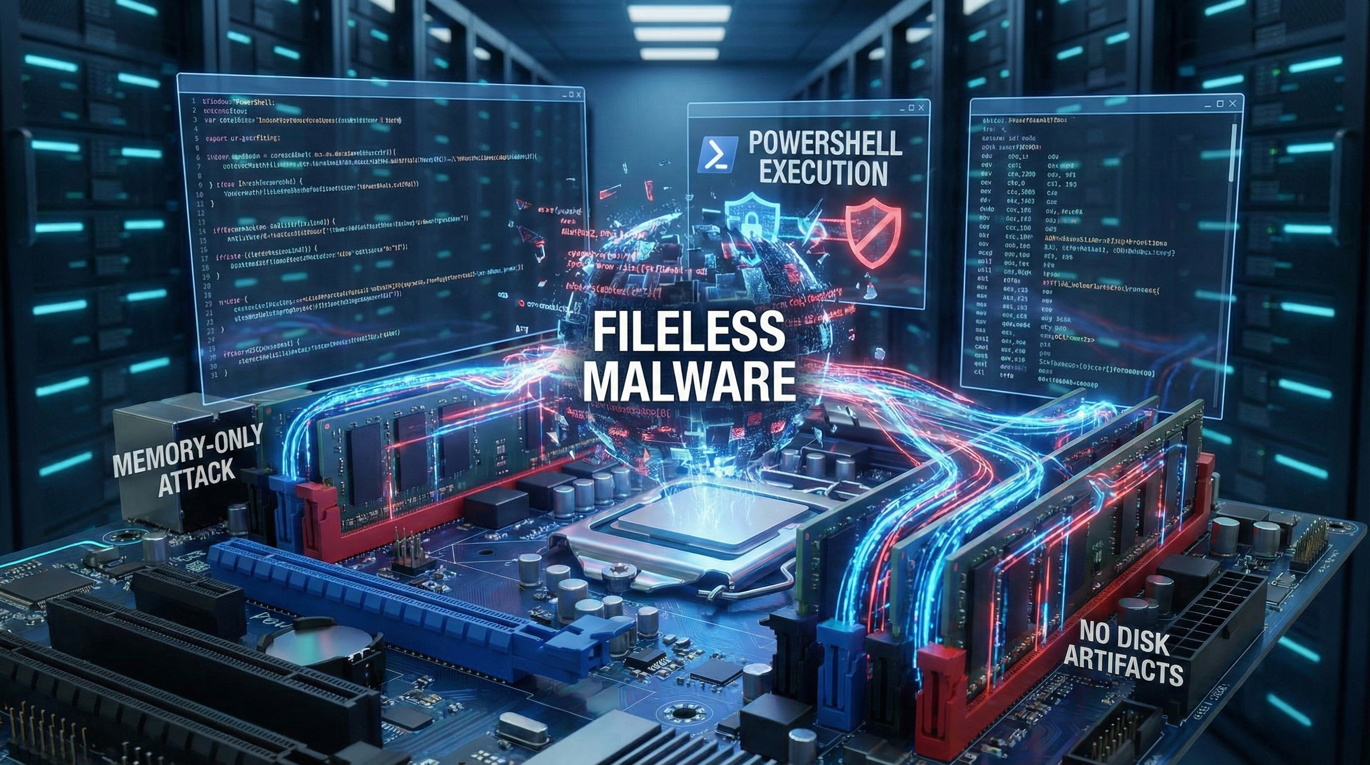 Fileless Malware là dạng mã độc hoạt động mà không cần tồn tại dưới dạng file vật lý trên máy tính. Thay vì ghi dữ liệu xuống ổ cứng, loại mã độc này khai thác trực tiếp bộ nhớ RAM, các tiến trình hợp pháp của hệ điều hành và những công cụ sẵn có như PowerShell, WMI hoặc registry để thực thi hành vi tấn công. Chính đặc điểm “không để lại file” này khiến Fileless Malware gần như vô hình trước nhiều giải pháp bảo mật truyền thống.
