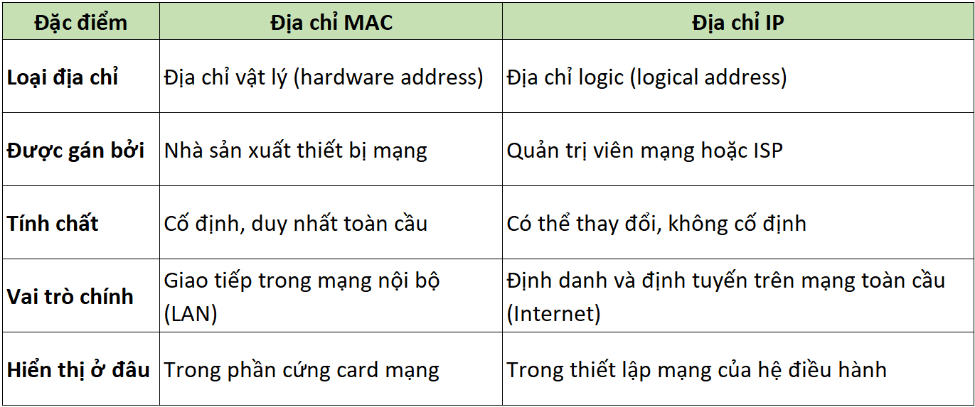 Phân biệt địa chỉ MAC và địa chỉ IP