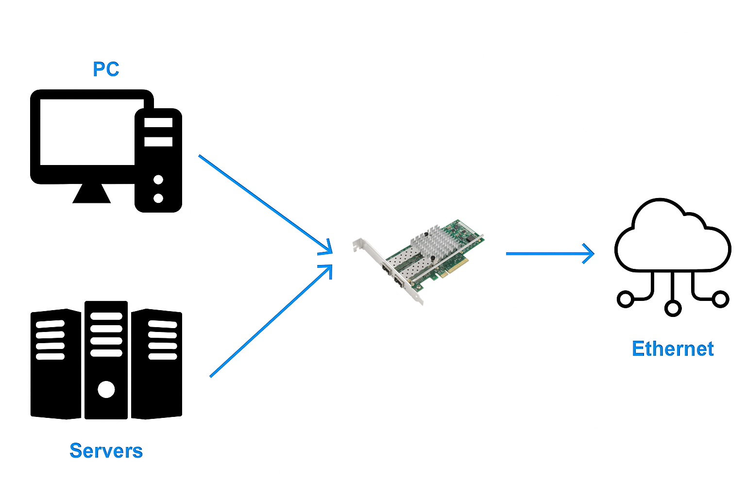 Card mạng NIC (Network Interface Card) không chỉ là bộ phận trung gian, mà còn là “cửa ngõ” giúp máy tính kết nối và giao tiếp với mạng. Những vai trò chính của NIC có thể kể đến như: